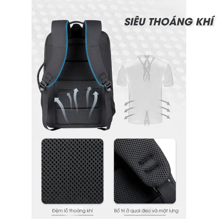 Dây đeo bản to cùng phần lưng được thiết kế lớp mút dày dặn, thoáng khí, tản nhiệt nhanh giúp giảm tối đa lực tác động tới cột sống của người dùng khi phải đeo balo trong thời gian dài, thường xuyên.