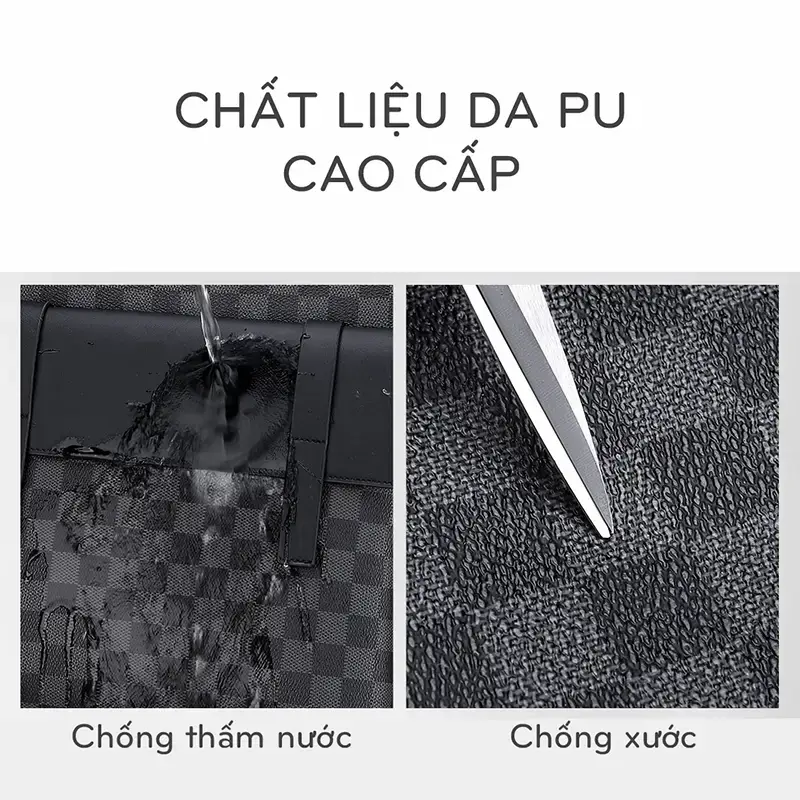 Sản phẩm được chế tác từ chất liệu da PU cao cấp, được xử lý công nghệ cao để mang lại hai tính năng quan trọng nhất cho người hay di chuyển: