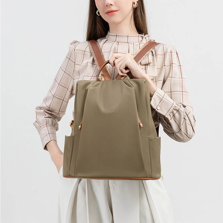 - Siêu nhẹ & Bền bỉ: Chiếc balo mini vải dù nữ này được làm từ chất liệu Nylon mật độ cao, nổi bật với đặc tính siêu nhẹ, chống thấm nước và chống trầy xước vượt trội. Bề mặt vải mềm mại, có độ bóng đẹp tinh tế, vừa dễ dàng bảo quản, vừa thể hiện chất lượng cao cấp của sản phẩm.