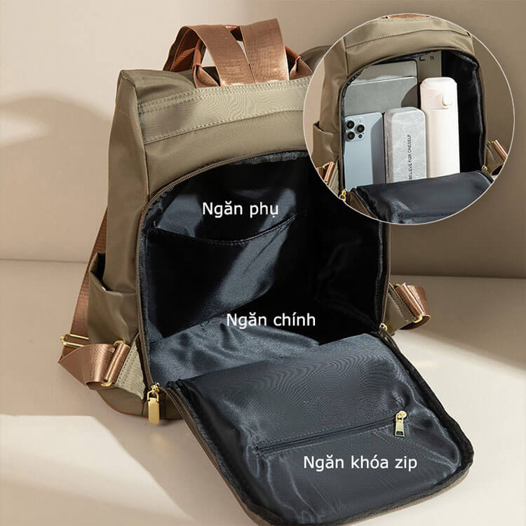 Dù là một chiếc balo nữ đi chơi hay đi làm, không gian bên trong vẫn luôn được tối ưu. Ngăn chính rộng rãi có thể chứa vừa tạp chí A4, Ipad, sạc dự phòng, trong khi các ngăn phụ được phân chia khoa học giúp bạn sắp xếp đồ dùng cá nhân một cách gọn gàng nhất.