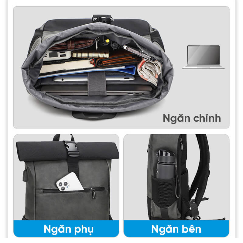 | Tiện ích | Laptop tối đa 15.6 inch, máy tính bảng, ô, sách vở, máy tính cầm tay, Quần áo và vật dụng….. Có ngăn sườn đựng ô, bình nước. |
