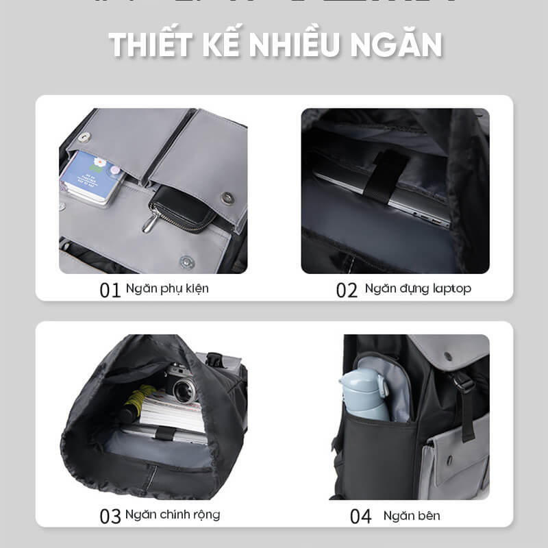 | Tiện ích | Laptop tối đã 15.6 inch, máy tính bảng, ô, sách vở, máy tính cầm tay, Quần áo và vật dụng…..Có ngăn sườn đựng ô, bình nước |