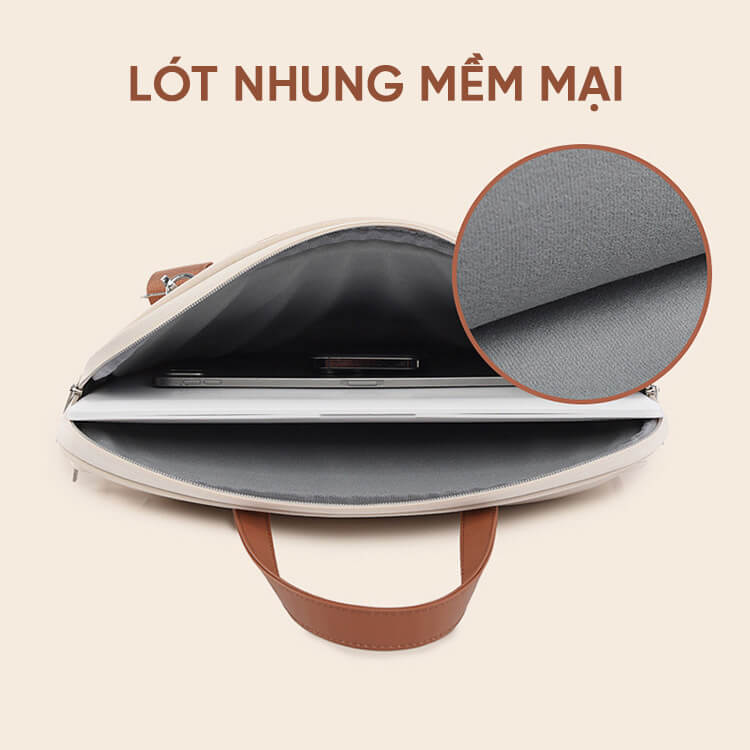 - Ngăn chính rộng rãi: Bên trong được lót một lớp nhung siêu mềm mại, bảo vệ chiếc laptop từ 14 đến 16 inch của bạn khỏi mọi va đập và trầy xước, giúp máy luôn bền lâu.
