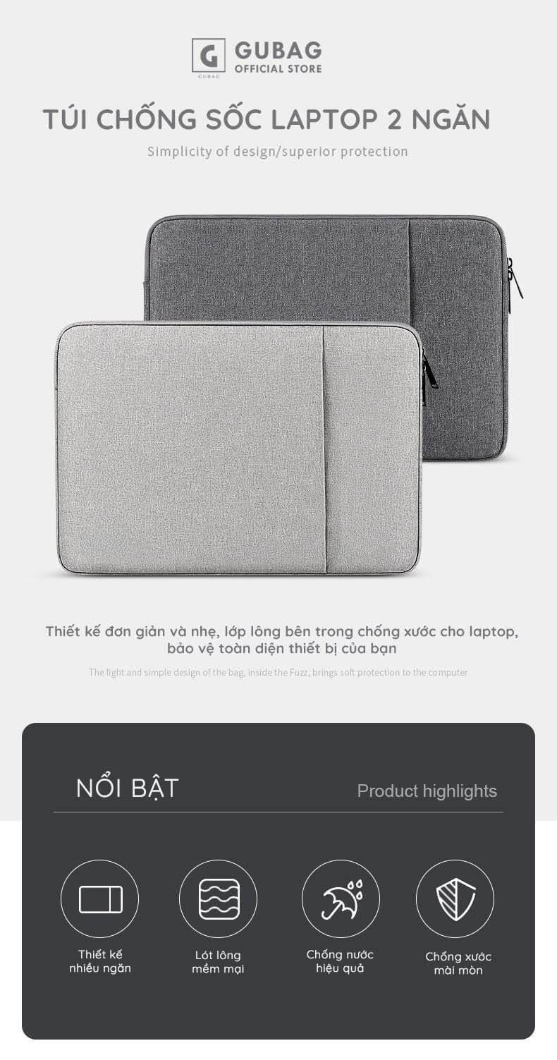 Túi chống sốc laptop 2 ngăn chính hãng Gu Bag GB-CS13 là lựa chọn hoàn hảo để bảo vệ laptop của bạn luôn an toàn và thời trang. Hãy sở hữu ngay sản phẩm tại website/cửa hàng của GuBag để nhận ưu đãi hấp dẫn!