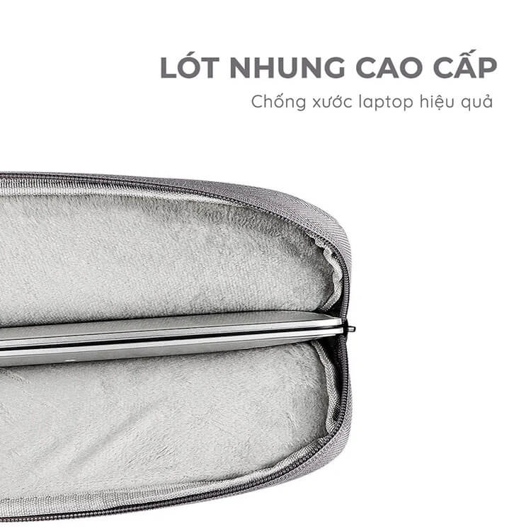 Lớp đệm mút dày dặn, êm ái bên trong giúp bảo vệ laptop khỏi va đập, trầy xước một cách toàn diện. Khóa kéo YKK cao cấp đảm bảo an toàn cho laptop. Thiết kế ôm sát, cố định laptop, hạn chế rung lắc trong quá trình di chuyển.
