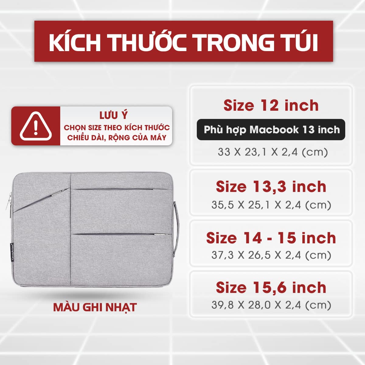 Chiếc túi chống sốc laptop có 3 ngăn GB-CS07 được thiết kế với nhiều kích thước khác nhau phù hợp nhiều loại laptop và mục tiêu sử dụng khác nhau là 12 inch, 13 inch, 14-15 inch, 15.6 inch. Bạn có thể gửi tên dòng máy, kích thước máy tính cho GuBag để được hướng dẫn lựa chọn sản phẩm phù hợp nhất.