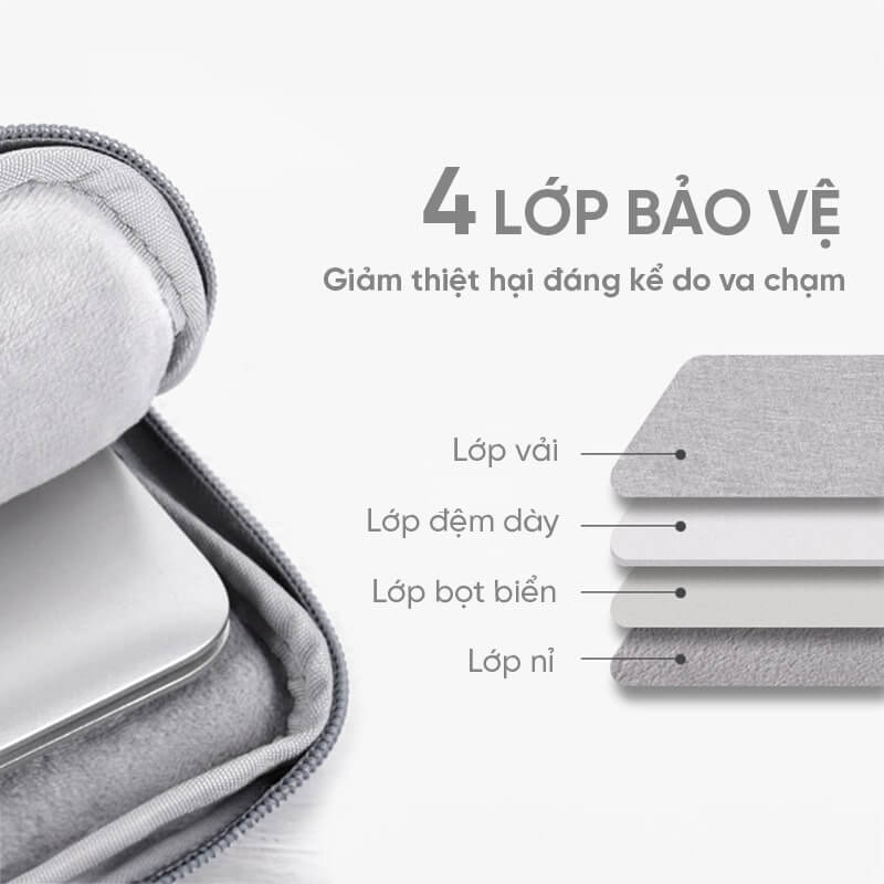 - Lớp đệm dày dặn giúp bảo vệ laptop khỏi va đập và trầy xước.