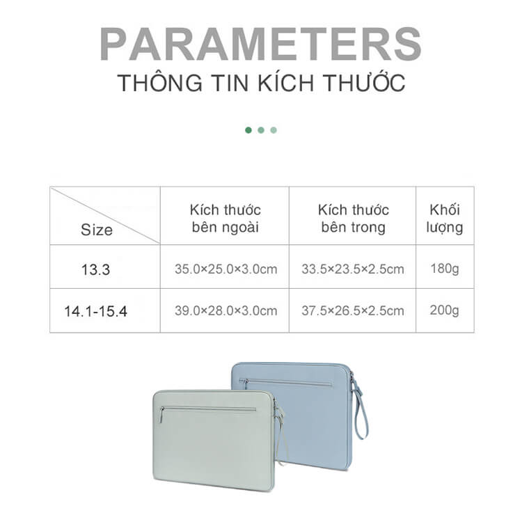 | Kích thước | 13 inch : 33,5 x 22,5 x 2,5 (cm) 14 -15 inch : 37,5 x 26,5 x 2,5 (cm) |