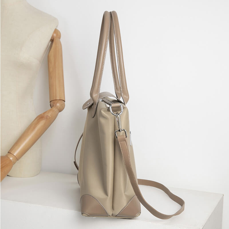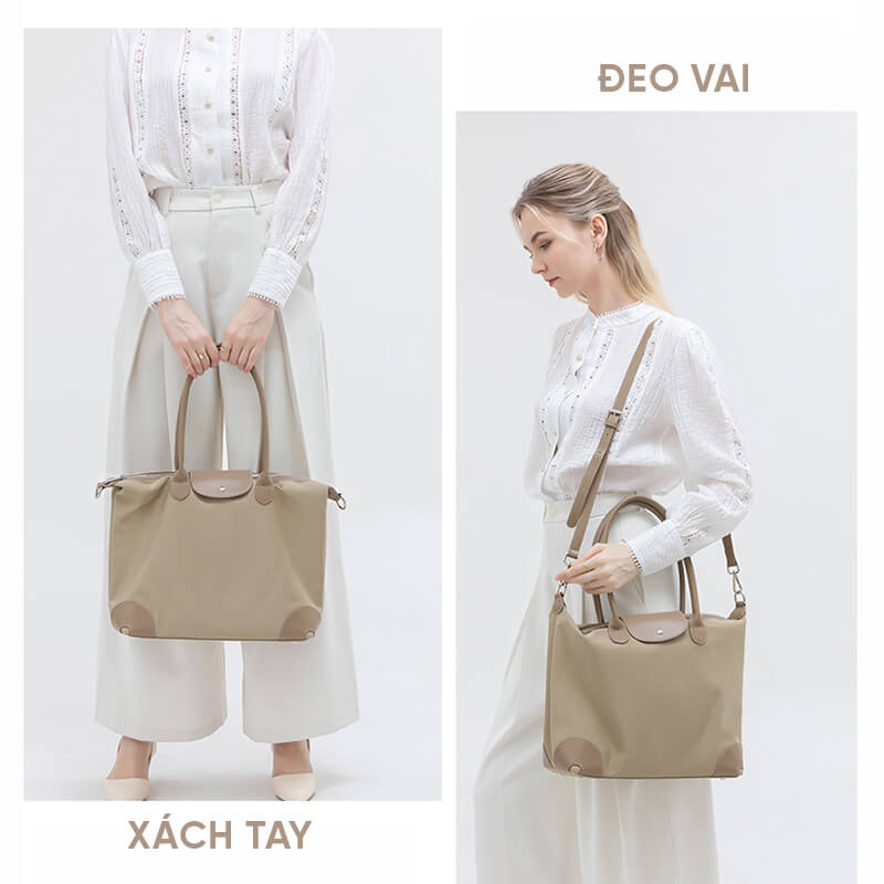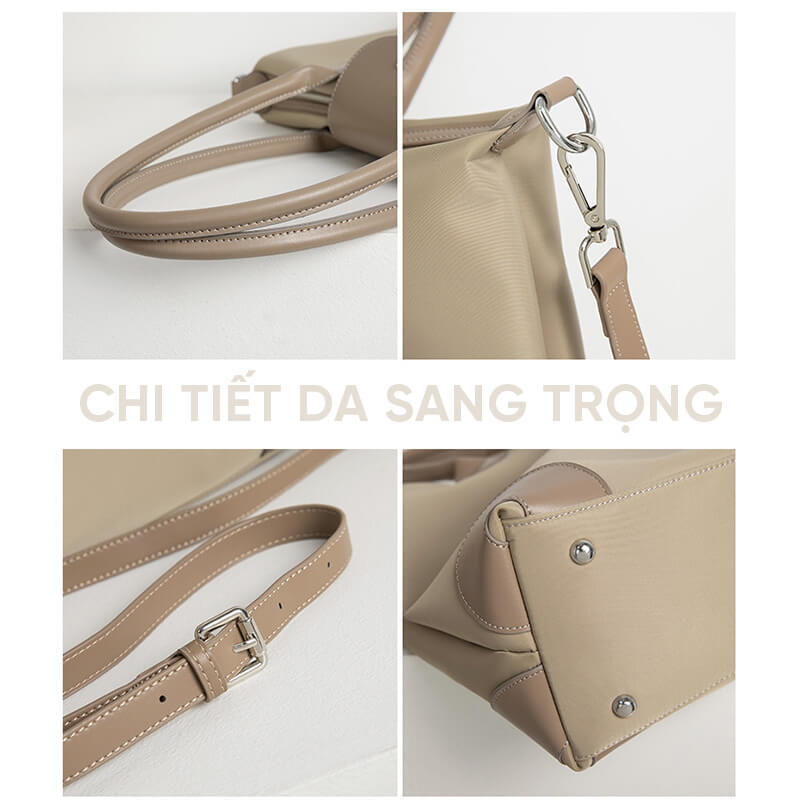 Sử dụng chất liệu vải cao cấp với khả năng chống thấm, chống nước, chống bám bụi khiến chiếc túi giữ form dáng và đồng thời độ bền chiếc túi. Những chi tiết điểm xuyết như quai túi làm bằng da, góc túi cắt góc mượt tôn lên sự thời thượng của chiếc túi.