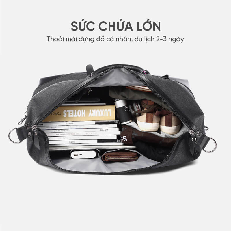 - Chiếc túi lớn với không gian được tính toán vừa đủ cho quần áo, món đồ cá nhân và đôi giày cho những chuyến công tác, du lịch ngắn ngày.